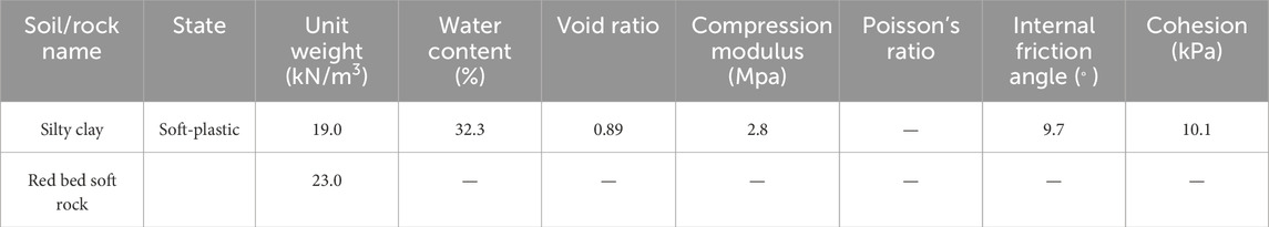 Red beds, formed through Meso-Cenozoic continental sedimentation, are widely distributed in China. The Sichuan Basin, often referred to as the “Red Basin”, is a key area for their concentrated presence (He et al., 2024; Wang and Shu, 2012). These rocks are typically weak and classified as soft due to their short depositional history and low levels of diagenesis. They exhibit low permeability and high hydrophilicity, leading to water-induced softening and disintegration upon drying (He et al., 2025). These properties contribute to common foundation isses such as low bearing capacity, surface instability, and settlement cracking (Zhang et al., 2024; Zhu J. et al., 2025) reinforcement essential for improving mechanical performance and ensuring stability.