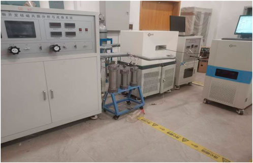 4. Pressurization: After purging the confining pressure fluid (fluorinated fluid FC770), the fluid was heated to the required experimental temperature using the heating unit. The industrial control computer was used to synchronously apply confining pressure and back pressure in the following sequence: 3-5-7–9-12 MPa for confining pressure and 1-3-5–7-8 MPa for back pressure. Meanwhile, CO2 from the gas cylinder was injected into the intermediate container and pressurized to the required experimental pressure via a constant-rate, constant-pressure pump.
