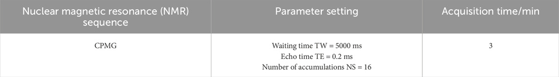 The CPMG sequence parameters were: waiting time (TW) = 5,000 ms, echo time (TE) = 0.2 ms, 16 accumulations, with an acquisition time of 3 min (Table 3).