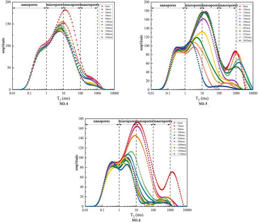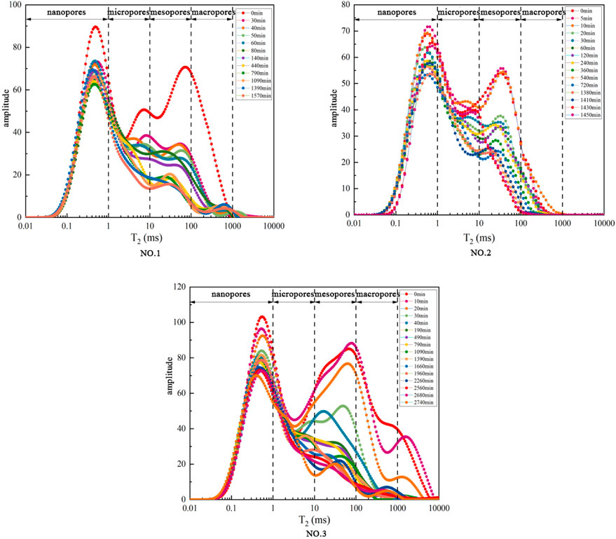 2. Qualitative analysis of water migration in cores during displacement via NMR T2 curves revealed that water migration during displacement is closely related to pore structure: water in mesopores and macropores is preferentially displaced, while water in nanopores and micropores is more resistant to displacement.