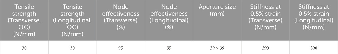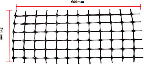 The geogrid employed in the test is a biaxially oriented plastic geogrid, shown in Figure 3. It is constructed from polypropylene (PP), with its specialized specifications outlined in Table 2.