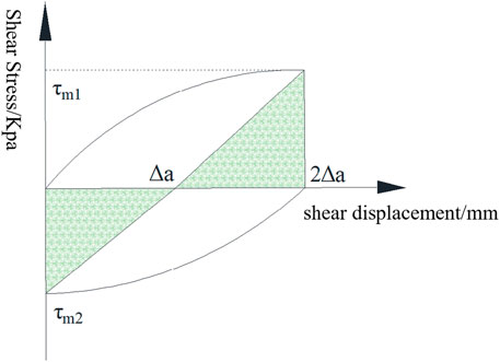 Dynamic interface shear stiffness and damping ratio are two important indicators for studying the dynamic mechanical properties of the soil-geosynthetics interface (Nye and Fox, 2007). The dynamic interfacial shear stiffness indicates the ability of the soil-geosynthetic interface to resist dynamic shear loads and is calculated according to Equation 2 and Figure 11.