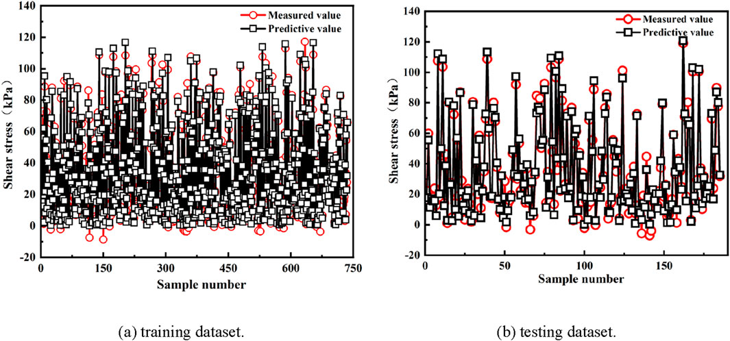 Figure 17. Prediction results on training\testingdatasets. (a) training dataset. (b) testing dataset.