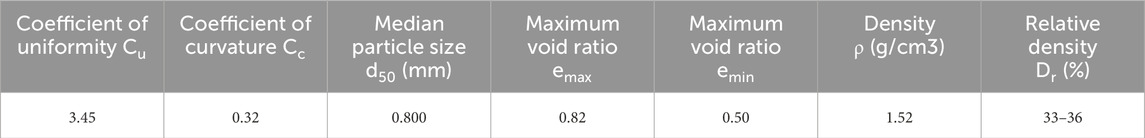 In this research, the experimental material is marine silica sand (see Figure 2). The particle size ranges from 0.075 mm to 2 mm. The physical and mechanical property indexes of the specimens are shown in Table 1.