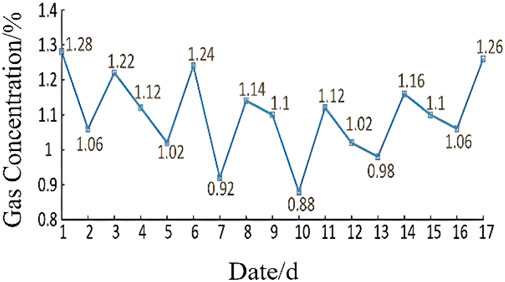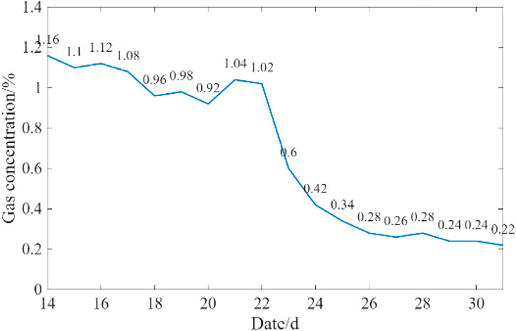 Figure 7. Variation curve of gas concentration in corner of working face after hydraulic fracturing.