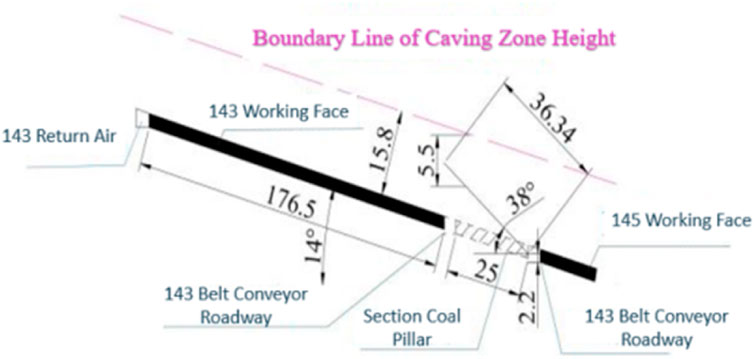1. The fracturing boreholes H are arranged along the corner of the 143 return airway, as shown in Figure 6.