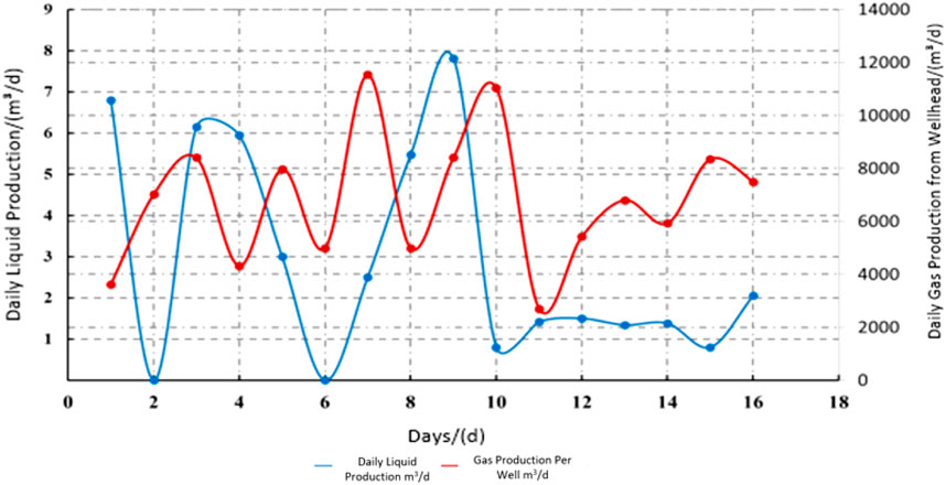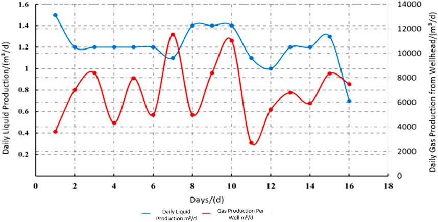 Following injection of the foam drainage agent, if gas and liquid production remain stable, this indicates that the daily liquid volume produced from the well bottom (including foaming liquid) is equal to the liquid volume replenished from the reservoir to the well bottom (excluding foaming liquid). From day 1 to day n, the liquid loading concentrations at the well bottom are