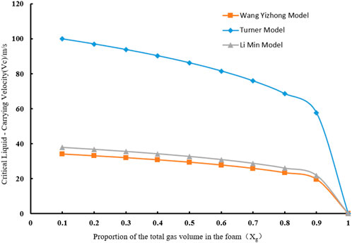 The Turner model assumes that liquid droplets are rigid spheres and ignores the deformability of liquid droplets in foam systems. However, as a special gas-liquid mixed dispersed system, foam has thin liquid films that are prone to deformation under the shear force of gas flow, and the actual liquid droplets are closer to a “spherical cap shape” (flat shape) (Wang et al., 2015). Although the Li Min model modifies the rigidity assumption of the Turner model, it still fails to fully consider the surface tension gradient of foam droplets and the gas core encapsulation effect. The Wang Yizhong model considers the liquid droplet as a spherical cap, and the degree of liquid droplet deformation is higher than that in the Turner model and Li Min model. In recent years, many scholars continue to cite this model, which fully proves its sustained influence and value in the academic community (Sun et al., 2023; Gowida et al., 2024). These citations not only indicate that the Wang Yizhong model remains an important foundation for research in this field to this day. Therefore, it is recommended to use the Wang Yizhong model.