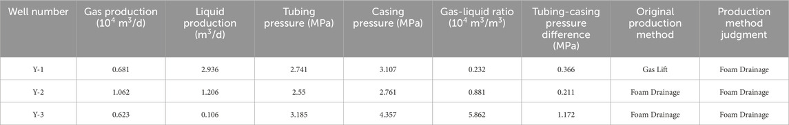 Methods: This study focused on three typical gas wells (Well Y-1, Y-2, and Y-3) with distinct liquid loading and FAL application statuses: Well Y-1 did not adopt foam drainage technology; Well Y-2 achieved good liquid production after FAL application but suffered from excessive foam drainage agent injection; Well Y-3 used FAL but failed to meet the expected foam drainage target. To address the limitations of traditional FAL parameter design, this research innovatively treated foam as a special type of liquid to align with existing wellbore pressure (e.g., Beggs-Brill method) and temperature distribution models. On this basis, three core technical components were developed: 1) a segmented liquid loading calculation model based on the casing-tubing pressure difference; 2) a comprehensive dosing parameter optimization system covering initial dosage, daily replenishment amount, and injection cycle; and 3) validation of critical liquid-carrying velocity models (including the Turner model, Li Min model, and Wang Yizhong model) to screen the most applicable one for foam systems.