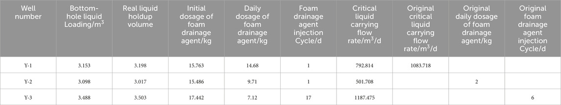 Practical application results show that the optimized foam drainage process significantly improves liquid-carrying capacity (26.89% for Well Y-1 and 22.64% for Well Y-3) while reducing costs. The foam drainage agent dosage for Well Y-2 was reduced to 32.3% of the original dosage; the foam drainage agent injection cycle for Well Y-3 was extended from 6 days to 17 days, reducing both foam drainage agent consumption and operational frequency.