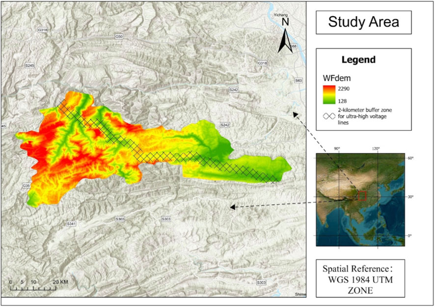 Geologically, Wufeng County lies within the tectonic belt of the middle and upper reaches of the Yangtze River, featuring complex geological structures. The area is prone to geological hazards such as mountain soil erosion, landslides, and rockfalls, with certain regions experiencing significant ground deformation risks. These characteristics make Wufeng County an ideal case study for monitoring ground deformation in UHV transmission corridors, particularly in mountainous and hilly areas where high-voltage power transmission lines are often installed.