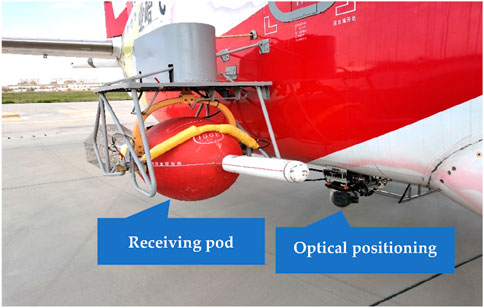 Figure 8. The layout of optical positioning sensor in flight platform. The receiving pod contains components such as the receiving coil, GPS positioning, pose acquisition module, and preamplifier. Staff can observe the position and safety of the receiving pod in real time through the optical positioning system.