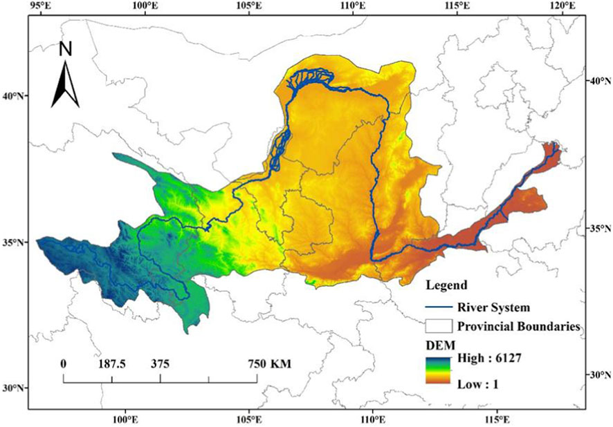 The Yellow River Basin (YRB) covering an area of 752,443 km2, with a main stream length of 5,464 km (Figure 1). It comprises four major geomorphological units: the Tibetan Plateau, the Inner Mongolian Plateau, the Loess Plateau, and the North China Plain. The western region is predominantly mountainous, the central area is characterized by loess landforms, the eastern part of the basin is primarily composed of the Yellow River alluvial plains. The basin exhibits complex and diverse climatic conditions, transitioning from arid in the northwest to semi-arid and semi-humid in the southeast.