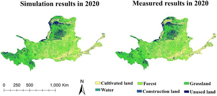 To validate the applicability of the model in simulating land-use change, we employed Kappa coefficient to assess the accuracy of the simulation results. It was widely acknowledged that a higher Kappa coefficient indicates better accuracy in simulation (Hou et al., 2022).