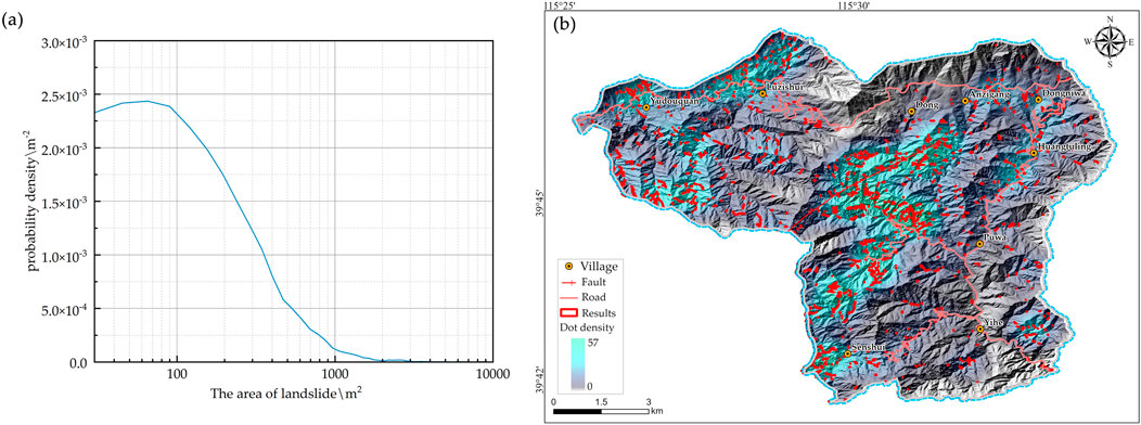 The analysis of landslide developmental characteristics is grounded in the stratigraphic information of the study area, the disaster zones affected by landslides, and To give the statistical distribution of landslide areas, a probability density function