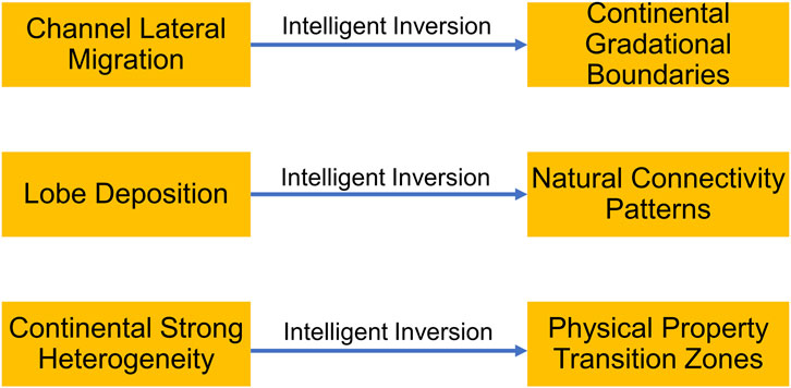 Figure 7. Physics-guided AI inversion results for typical geological features. Such features include channel lateral migration, lobe deposition, and continental heterogeneity transitions.