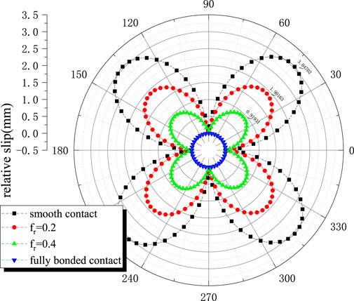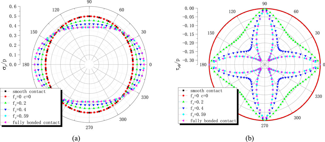 Frictional slip contact represents an intermediate state governed by Coulomb’s friction theory, as expressed in Equation 5. When the coefficient of friction is zero or exceeds a certain threshold, the analytical solutions for two extreme contact conditions (perfect combined contact and smooth contact) can be derived.