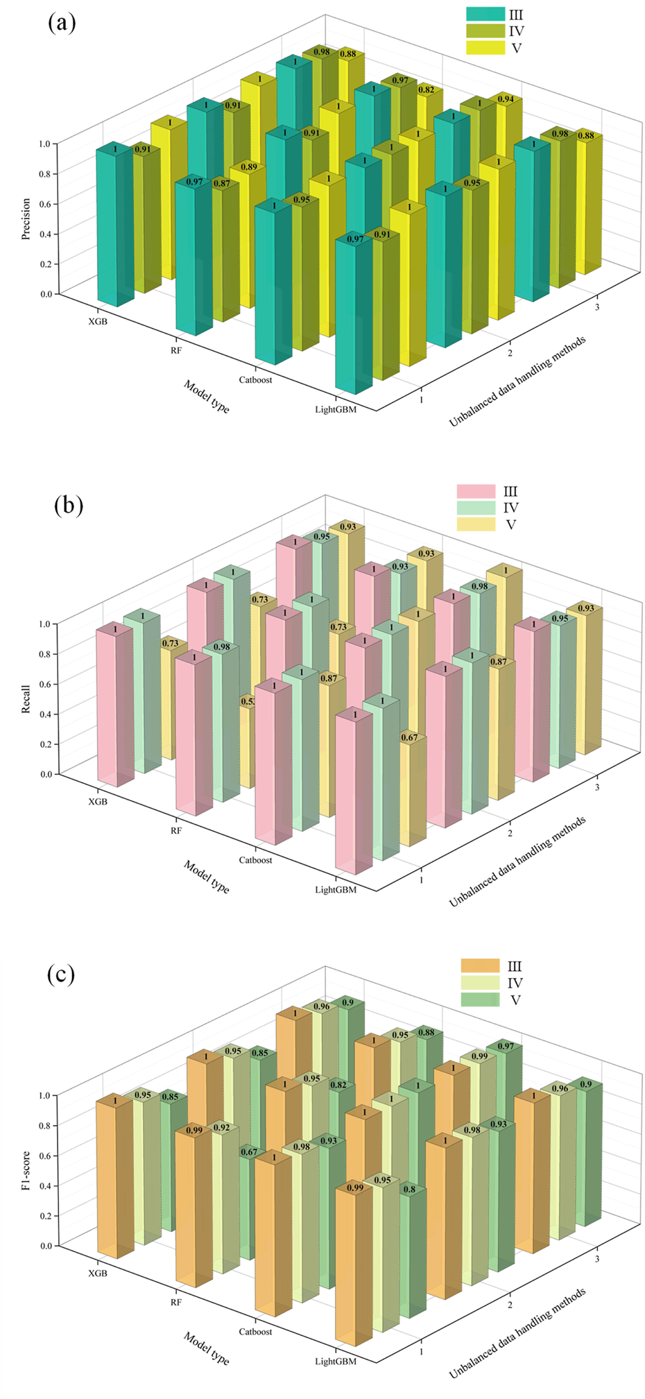 Evaluation metrics for intelligent diagnostic models: (a) Precision; (b) Recall; (c) F1_score.