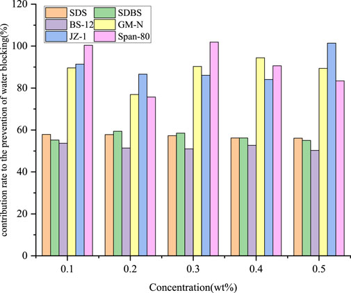 Analysis indicates that all tested surfactants enhance water-blocking performance with contribution rates exceeding 50%, demonstrating their effectiveness in mitigating capillary resistance and reducing water block damage. Cationic surfactants (e.g., GM-N and JZ-1) exhibit particularly high performance, with contribution rates generally above 80% and exceeding 90% at certain concentrations. Their efficacy remains stable across a range of dosages, suggesting consistent performance independent of concentration.