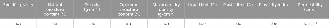Slope geometry also plays a critical role in failure mode. Studies involving nearly vertical, linear, and terraced slopes have revealed distinct failure mechanisms (Sun et al., 2019; Zhang et al., 2019; Chang Z. et al., 2021; Guo et al., 2023). For instance, nearly vertical fill slopes are prone to intermittent, sudden shallow failures under short-term continuous rainfall, whereas terraced fill slopes exhibit gradual shallow failures during prolonged rainfall. The linear and terraced slopes show different deformation responses, largely due to variations in rainwater infiltration patterns and rates. Infiltration is typically faster on slope berms than on slope surfaces, leading to spatially heterogeneous shear strength distribution. After several intermittent rainfall events, cracks often develop, particularly along the slope crest. These tension cracks, in turn, significantly influence wetting front advancement during subsequent extreme rainfall (Ren et al., 2025), highlighting the important role of cracks in slope stability. Key crack characteristics—such as depth, location, width, and filling condition—govern their function as preferential flow paths and strongly affect failure initiation. It should be noted that the current conclusions are based on specific test conditions, and their generalizability may be limited. Future work will focus more closely on the influence of fissures on the rainfall-induced failure process of loess slopes.