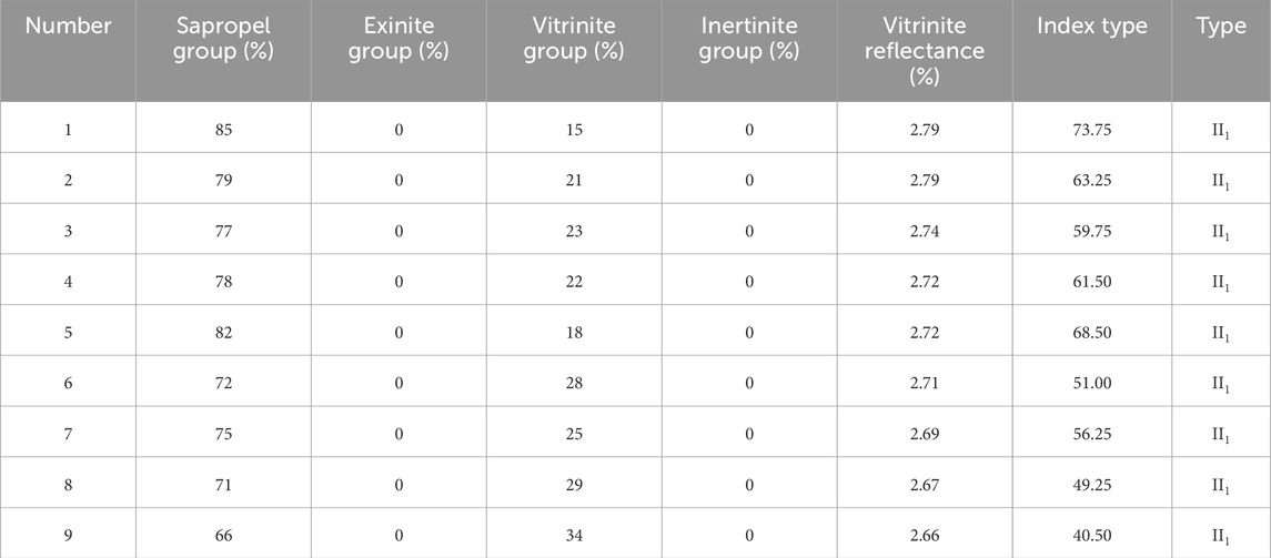 Organic matter abundance, kerogen type, and thermal maturity are the three fundamental geochemical indicators for evaluating the properties of source rocks (Lai et al., 2022; Yan et al., 2025). The organic geochemical analysis of the Qiongzhusi Formation shale reveals its excellent hydrocarbon generation potential. The abundance of organic matter in the rock is typically characterized by TOC, which effectively reflects the hydrocarbon generation potential (Lai et al., 2024; Guo et al., 2023). The TOC content in the research block varies widely (0.01%–3.55%), with an average of 0.49%. The shale in the research block reaches the level of a medium-abundance source rock, with a certain hydrocarbon generation potential (Wang et al., 2024).