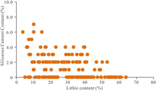 4. Reservoir quality is demonstrably controlled by lithology, diagenetic facies and the diagenetic history. Coarse and medium sandstones exhibit the best properties, followed by fine sandstones; siltstones are poorest. Among diagenetic facies, lithic quartz sandstone displays the highest porosity and permeability, followed by quartz sandstone, lithic sandstone and, lastly, calcareous-cemented sandstone.