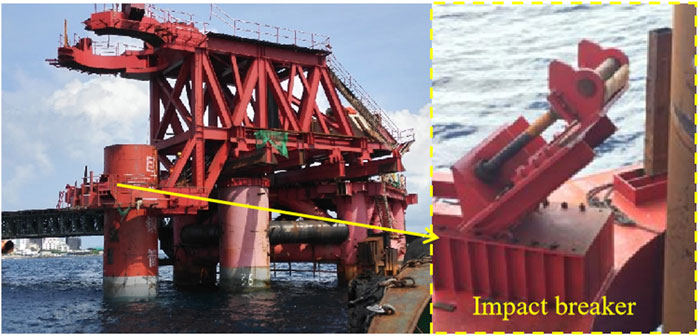 For offshore bridge projects, the construction of driven steel pipe piles is affected by ocean currents and waves, which can result in low accuracy in pile positioning and increased construction safety risks. Furthermore, the presence of cavities or weak layers in the coral reef strata poses a risk of “pile slippage” during installation. Figure 12 illustrates the developed guide frame equipped with hydraulic automatic opening and closing chuck, which effectively mitigates safety risks associated with excessive swaying during the hoisting of the steel casing. The cantilever guiding frame system with a fuse mechanism can prevent impact on the guiding frame by triggering the fuse in case of “pile slipping.” These methods ensured that the installation precision of steel pipe piles under ocean current and wave conditions met the necessary standards (as depicted in Figure 13): planar displacement <25 cm and inclination <0.5%.