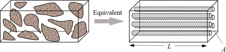 Macroscopic Grid Block: The model considers a grid block of length L and total cross-sectional area A (Equation 1). Its total pore volume (Vp) is defined by the average porosity ϕ:
