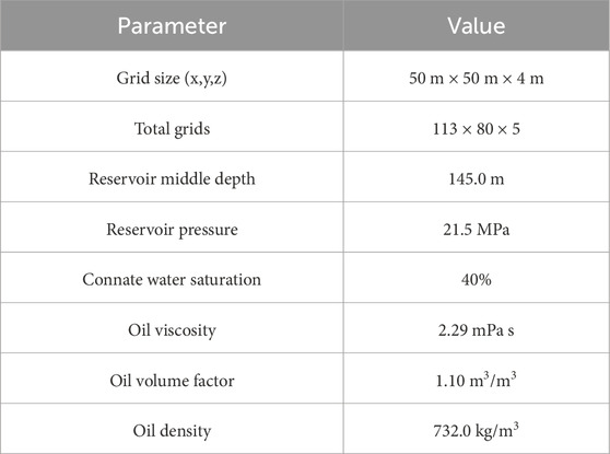 The key reservoir properties, fluid characteristics, and initial conditions are summarized in Table 1. The reservoir is at an initial pressure of 21.5 MPa, with a moderate oil viscosity of 2.29 mPas. The base-case relative permeability curves used in the conventional static simulation are also presented in Figure 6. This comprehensive dataset provides a robust basis for comparing the performance of the conventional simulation approach against our new dynamic methodology.