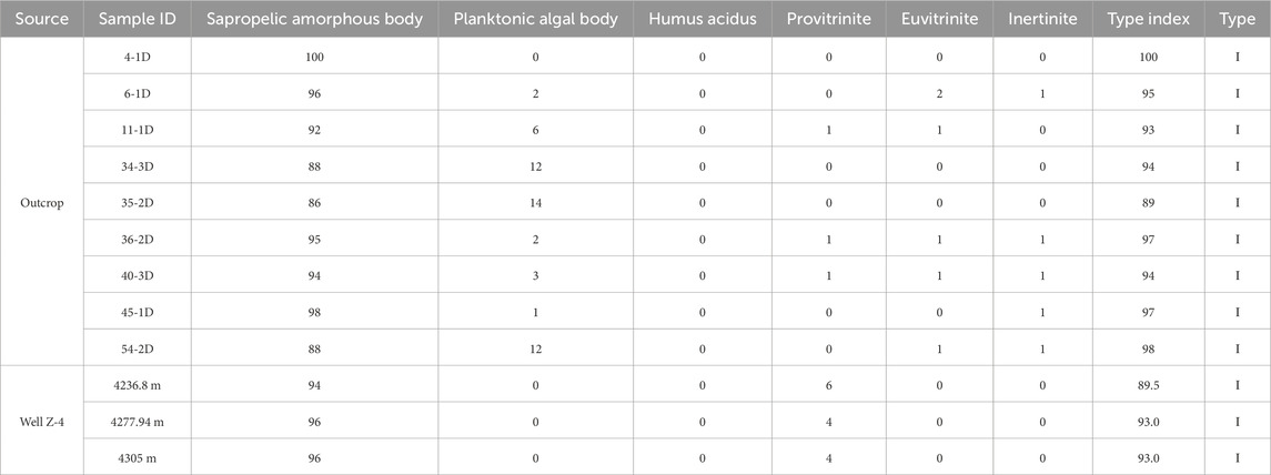 Table 1. Microscopic composition and type classification of kerogen in Maidiping Formation source rocks.
