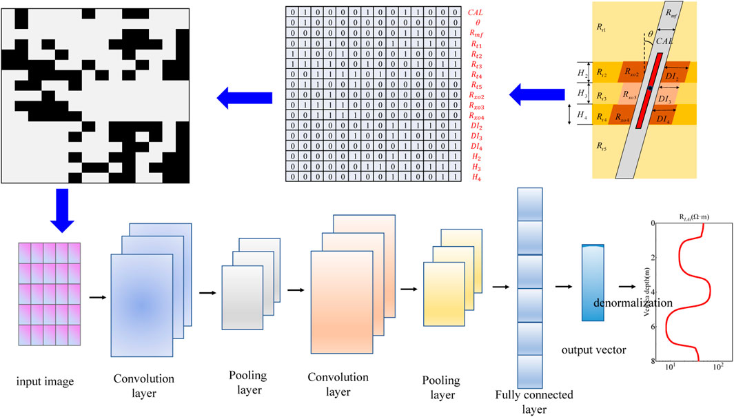 To enhance the computational speed of ALL, numerous data-driven approaches have been explored (Zhang and Zhou, 2002; Wu et al., 2025; Hagiwara, T., 2023). These approaches primarily focus on two key aspects: the computational model construction and the selection of deep learning (DL) algorithms. The model is typically established in two ways: a fixed computational domain approach and a fixed number of layers approach. The former, defined by a pixel-based representation, accommodates formations with arbitrary beds but faces challenges in database generation due to high computational demands from excessive pixel counts. In contrast, the fixed-layer model relies on a limited set of control parameters, enabling efficient database construction since the required data size decreases exponentially with fewer parameters (Liu et al., 2024; Zhao et al., 2024). However, since the number of layers within the tool’s detection range is uncertain, this approach may oversimplify the problem, leading to significant computational errors. Thus, balancing the tradeoff between generalization capability for complex formations and simulation accuracy remains a key challenge.