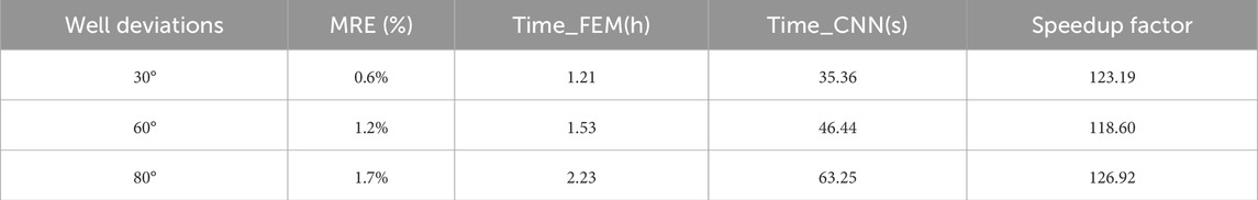 Figure 8. Comparison of Calculation Results between FEM and CNN, where the well deviations are (a) 30°, (b) 60° and (c) 80°.