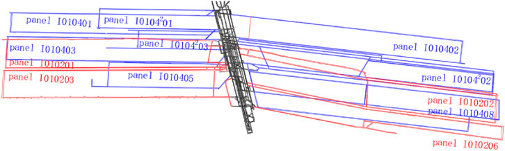The relative positional relationship of the panel is as shown in Figure 4. The B4 coal seam is the first seam to be mined in Kuangou. Except for panels W11423 and E11422, which mined the B4-2 seam, the remaining panels mined the B4-1 seam. Some panels were affected by the residual mining structures of B4-2, making mining structure a contributing—but not dominant—factor for rockbursts in the B4 seam. During B2 seam mining, however, the stress concentration and strong dynamic loads induced by overburden breakage under mining influence are major triggering factors.