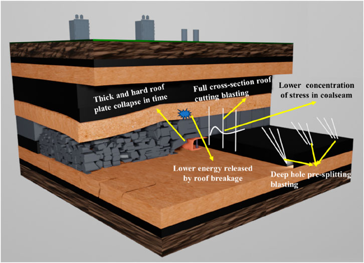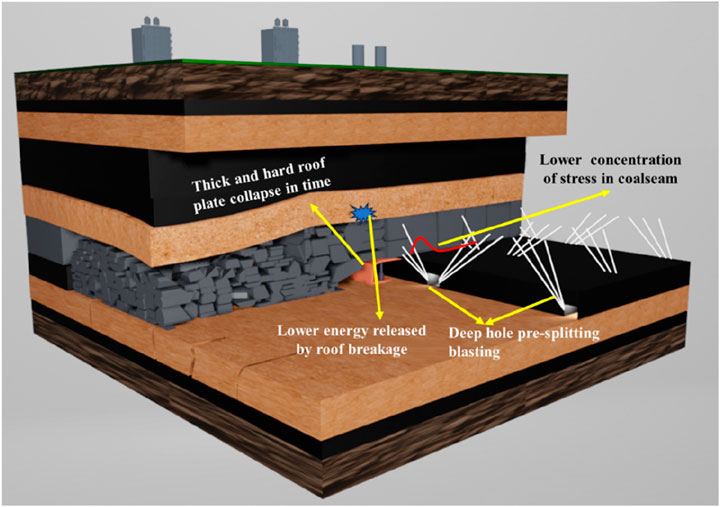 Thick-hard roof strata represent inherent geological conditions in coal mines and cannot be completely eliminated. Therefore, to ensure safe production in rockburst-prone mines, engineering measures must be applied to mitigate their impact as much as possible. Long-term engineering practice has shown that presplit blasting is an effective method for managing thick-hard roofs that has been widely used in many mines. However, blasting operations can easily cause gas concentrations (such as CO) to exceed safety limits and present additional hazards. With increasing demands for safe, efficient, and environmentally friendly production, presplit blasting can no longer meet operational requirements.