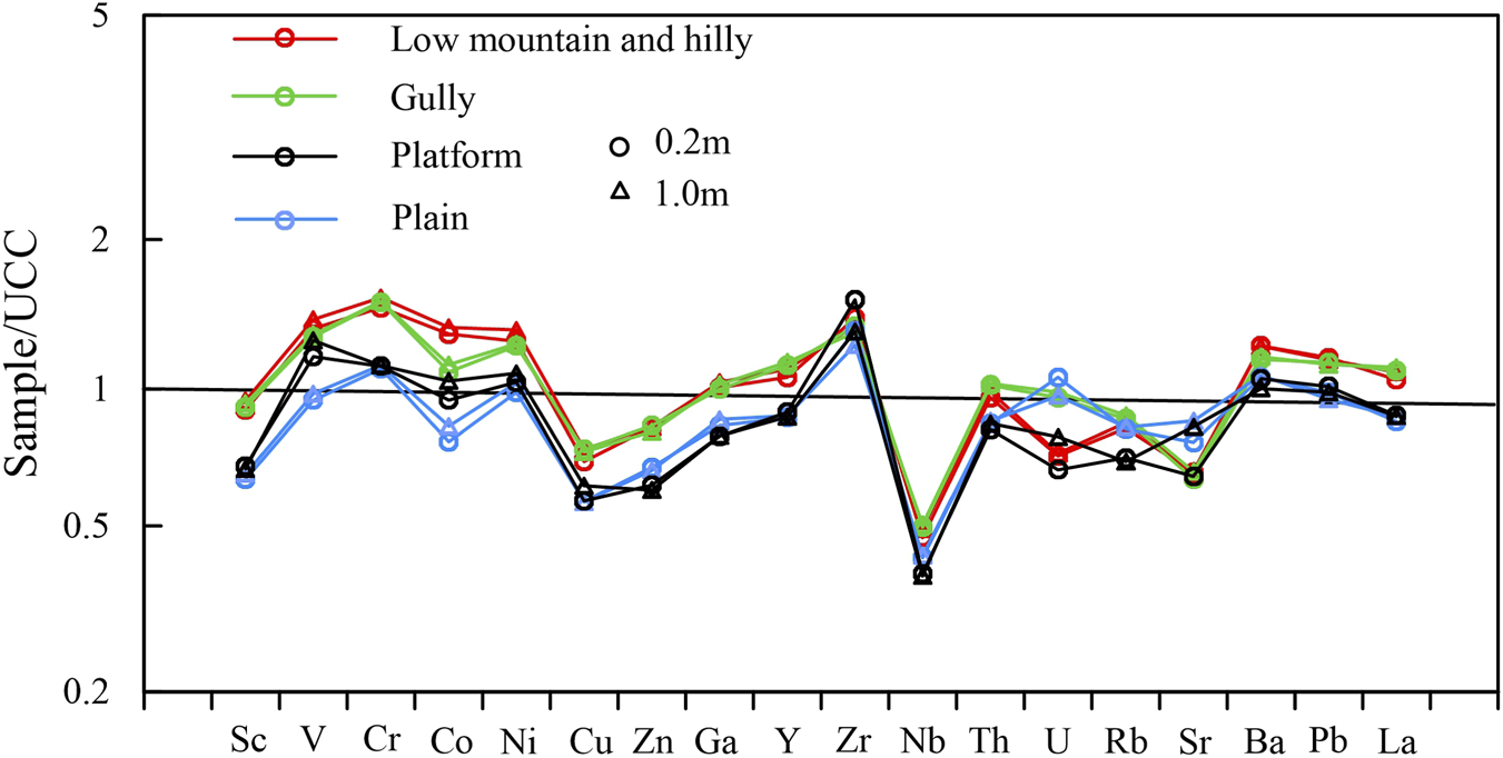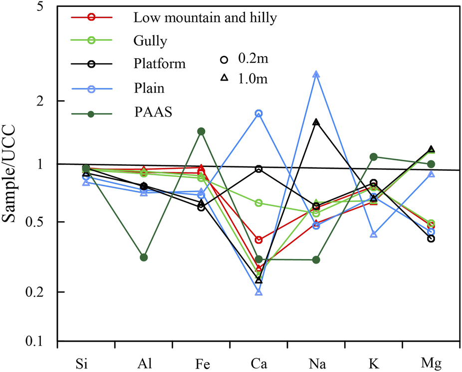 In this study, end-member modeling analysis coupled with geochemical proxies of major and trace elements was applied to systematically investigate the grain-size distribution and sediment sources in the northwestern margin of the Songnen Plain. Paired samples from surface (0.2 m) and subsurface (1.0 m) layers across different geomorphic units were compared.