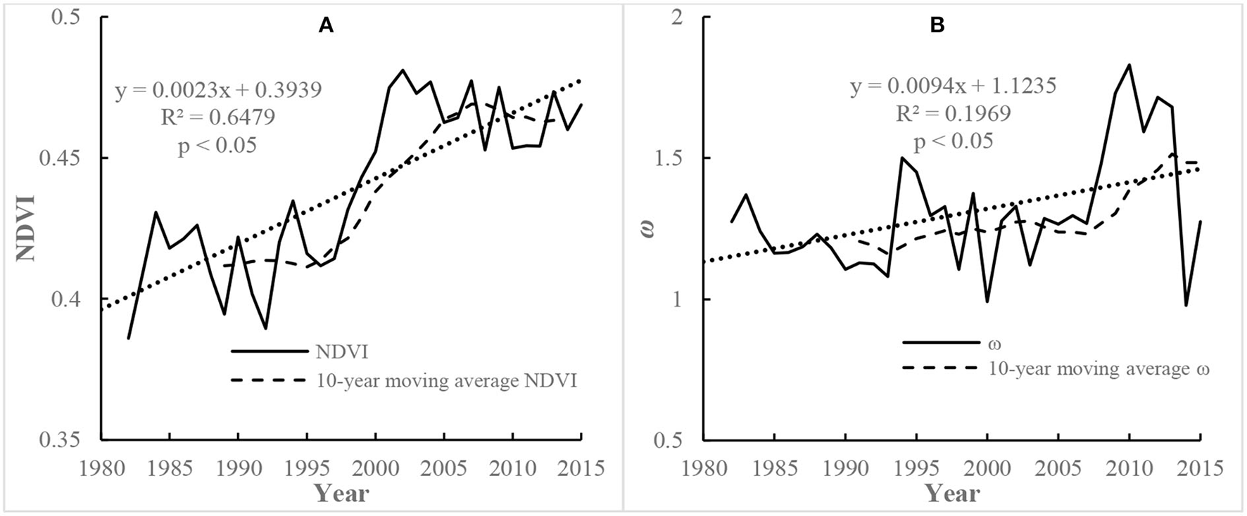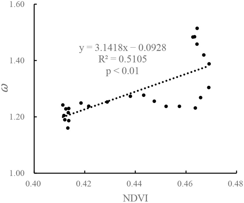 Li et al. (2013) studied the relationship between NDVI and Budyko parameter (ω) in 26 rivers and found that there is a good univariate linear function relationship between them.