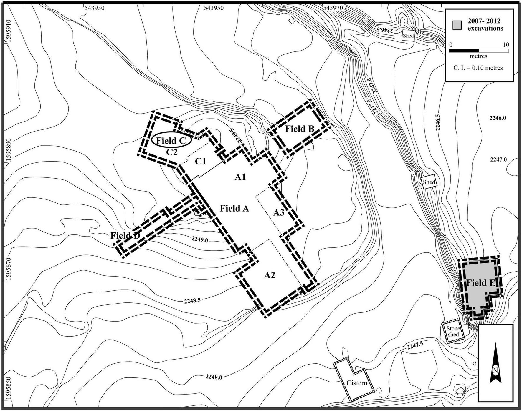 Fields/contexts with faunal remains excavated at Mezber. Map by Lynn Welton.