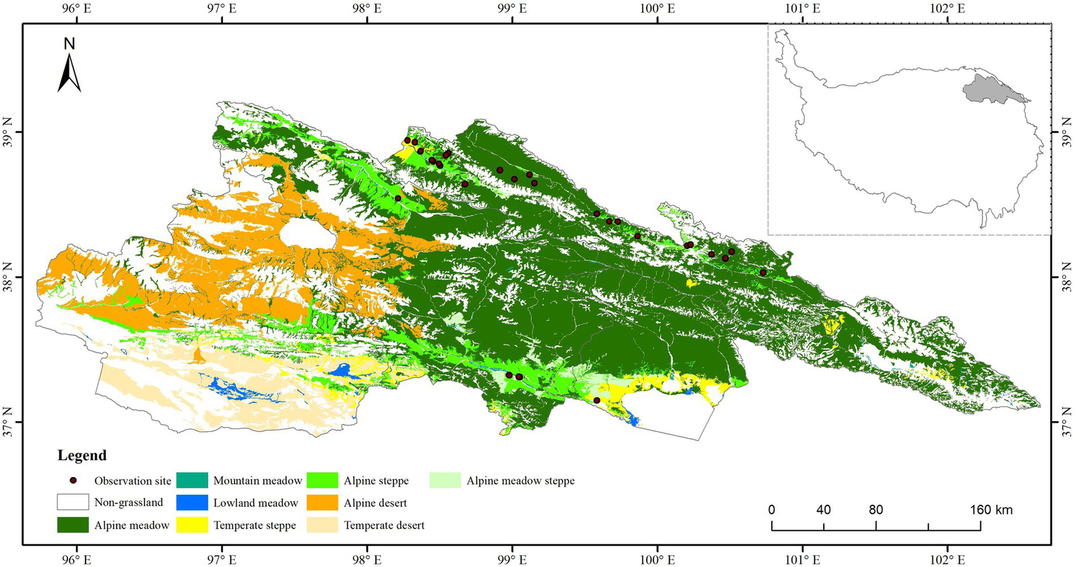 The Qilian Mountain National Park was located in the center of Eurasia at the intersection of the QTP, the Mongolia Plateau and the Loess Plateau, and it was an important ecological shelter zone in western China (Li et al., 2019; Liu et al., 2022). Alpine grassland was the main land use type (90%). Unfortunately, more than 90% of grassland is degraded due to climate changes, human activities and natural disasters. There were ten species of locusts in the Qilian Mountain National Park, the stability of the grassland ecosystem and sustainable economic development of Qilian Mountain was greatly affected and restricted by the locust (Yang et al., 2020).