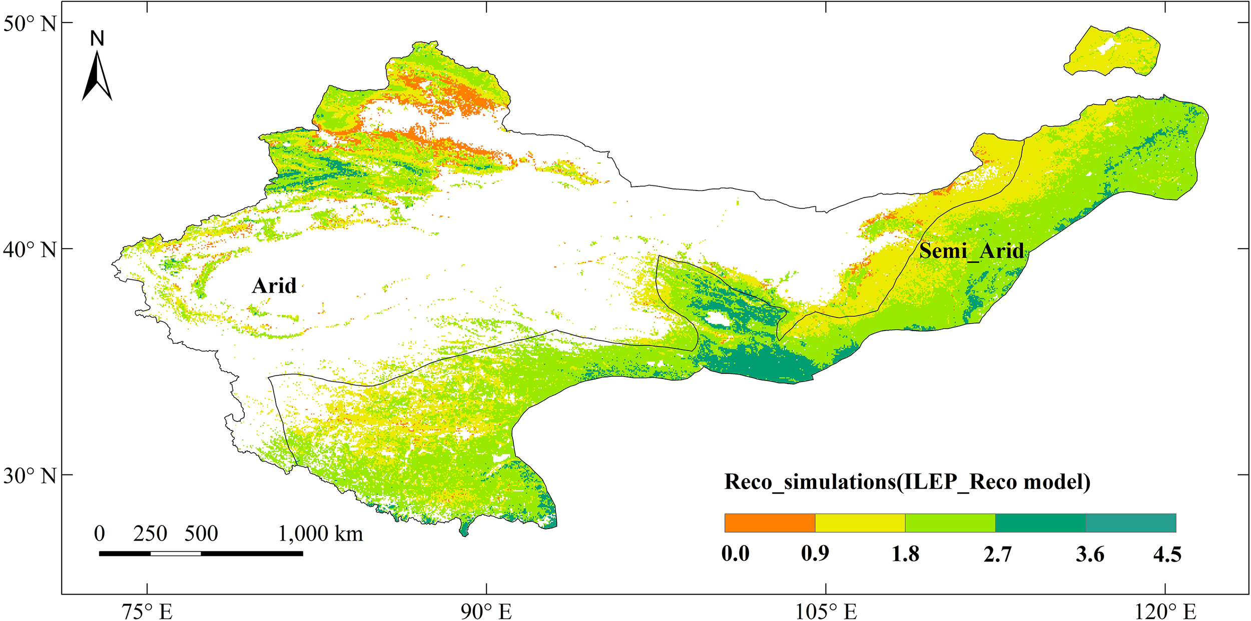 In a nutshell, spatial-temporal simulation of Reco in drylands is still quite inadequate. Based on the useful progress above, we aimed to find ways to better represent the spatial-temporal patterns of Reco in drylands using MODIS data and the Q10 model. The objectives of this study are: 1) to explore the seasonal dynamic patterns of Reco in drylands, and to explore ways to efficiently simulate Reco’s seasonal change; 2) to study the spatial dynamic patterns of Reco in drylands, and to develop an efficient MODIS Remote sensing Rref model; 3) to construct a MODIS remote sensing Reco model so as to efficiently simulate the spatio-temporal patterns of Reco in drylands. This work will provide specialized research in the simulation of Reco in drylands, and will be very helpful for us to understand the variations of Reco there, and thus will cast light on the carbon budget on a regional scale, or even on a global scale.