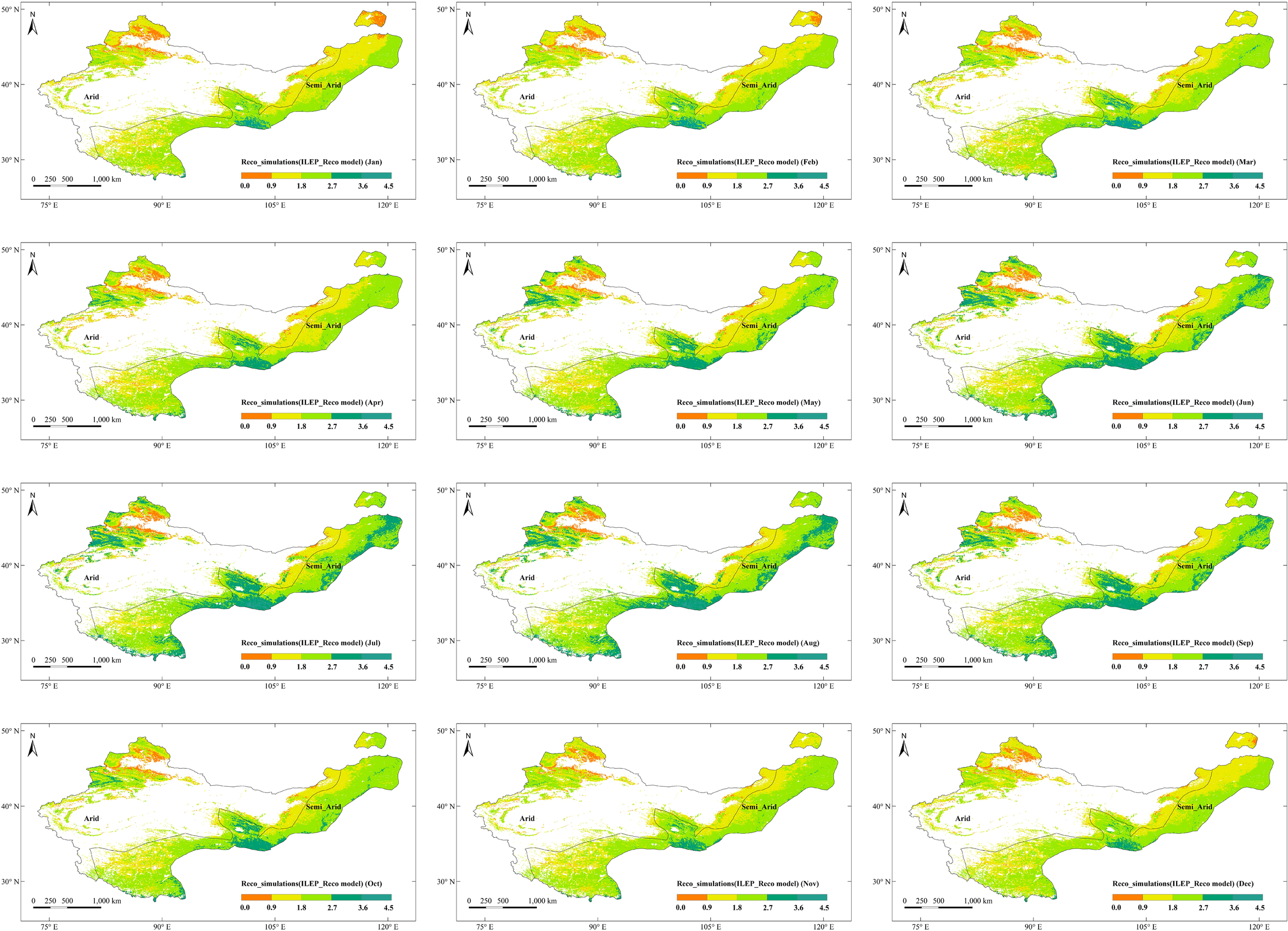 Reco_std is the ratio of Reco and Rref. Here, firstly, we set the Rref to annual mean Reco (Reco_mean) (formula (6)), and then the Reco_std was calculated by formula (5):