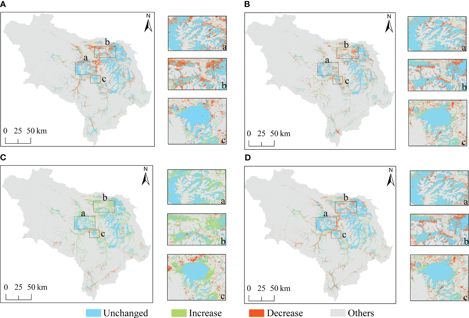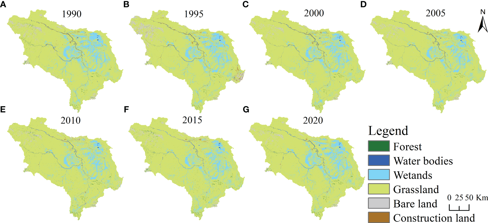 Zhou Y. Liu T. Duan L. Wang Y. Li X. Li. M. (2020). Driving force analysis and landscape pattern evolution in the upstream valley of Xilin River Basin. Arid Zone Res.37 (3), 580–590. doi: 10.13866/j.azr.2020.03.05