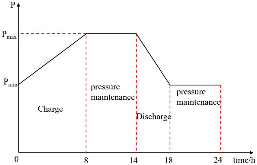 New energy generation can effectively reduce carbon emissions, but power generation instability remains unresolved, becoming a major constraint to its development (Lund and Salgi, 2009; Qin and Loth, 2021). Large-scale energy storage is a viable solution to this problem. It involves storing excess electricity during periods of low electricity consumption and releasing it during peak consumption periods. Therefore, the combination of new energy generation and energy storage can provide a stable supply of electricity (He et al., 2019; Wu et al., 2020). Currently, the main energy storage methods are pumped hydrostorage (PHS), compressed air energy storage (CAES), and electrochemical storage (ES; Zakeri and Syri, 2015; Zhang et al., 2016). The construction of PHS stations has reached saturation due to geographical constraints and negatively impacts the environment, whereas ES has a low lifespan, and rational disposal of batteries remains an unresolved issueand. Comparing the different types of energy storage, we find that CAES is a more viable energy storage method (Lund and Salgi, 2009; Yang and Jackson, 2011; Kang et al., 2020).