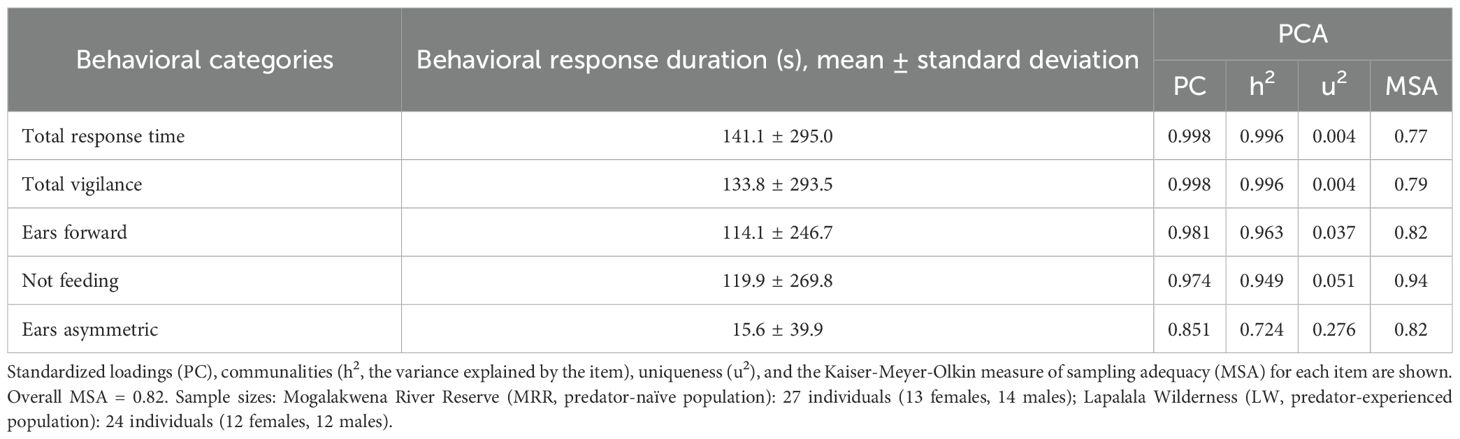 Table 2. Behavioral responses to playbacks (in seconds) were summarized using principal component analysis (PCA) with ‘varimax’ rotation.