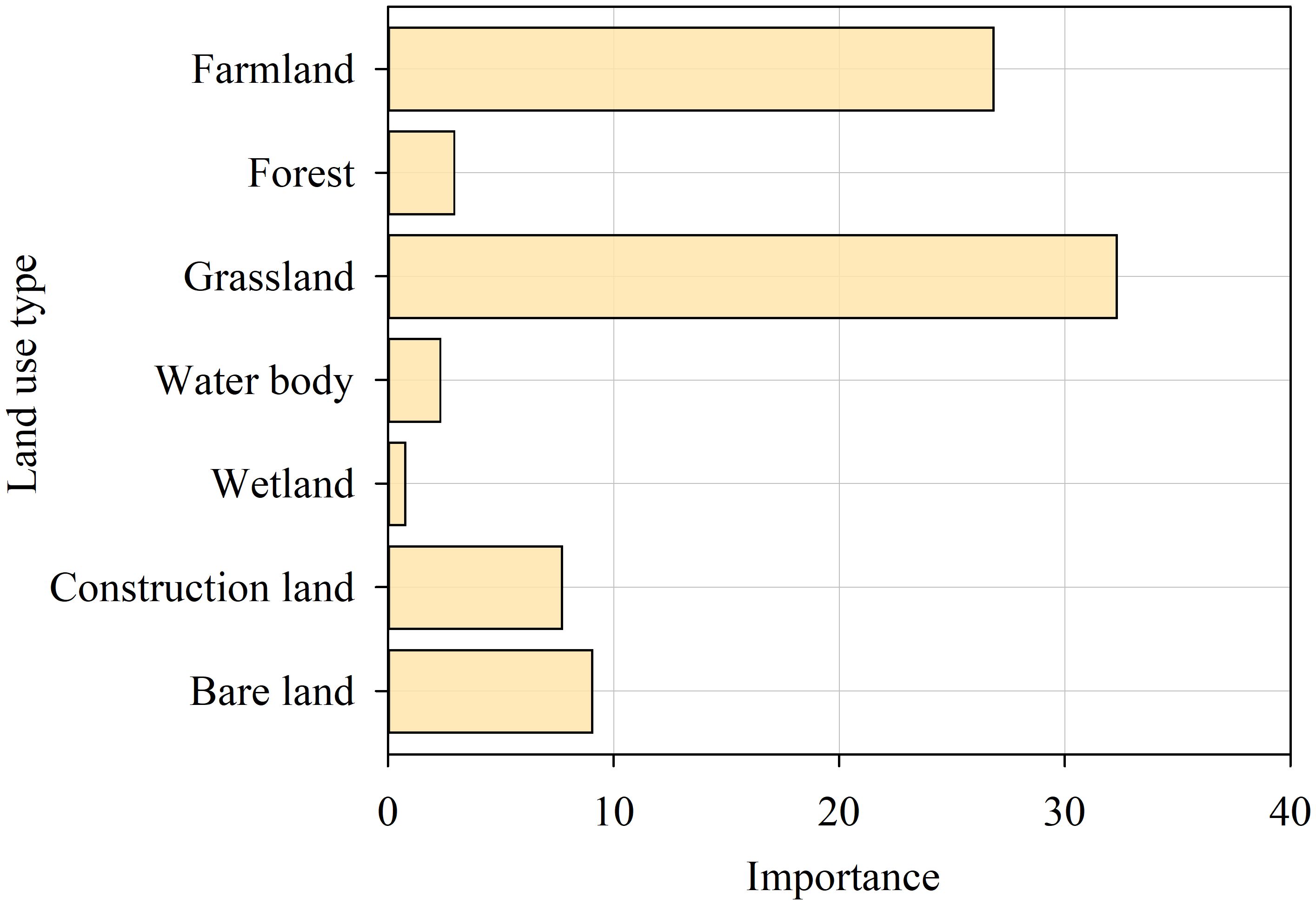 This study applied the random forest model to evaluate the contribution of different land use types to ecosystem health and identify key land use types at a 3 km × 3 km grid scale. Subsequently, using RStudio, a piecewise linear regression model was constructed with the average EHI as the dependent variable and the proportions of key land use types as the independent variables. This approach was used to determine the non-linear relationship between EH and the proportions of key land use types at the grid scale, as well as to identify how EH responds to the proportions of key land use types and their threshold values.