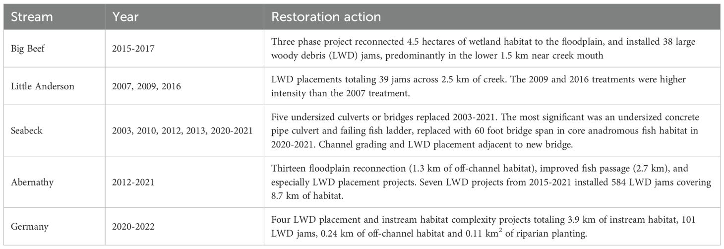 Table 2. Summary of restoration treatments intended to boost salmon populations during the 2003 to 2022 study period.