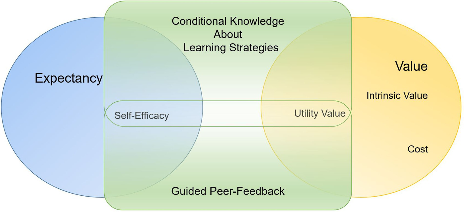 Our approach is based on the Expectancy-Value Theory of motivation, which offers options to sustain motivation (Atkinson, 1957; Wigfield and Eccles, 2000). According to this theory, people are motivated (a) when they believe they can accomplish the task (expectancy), and (b) when they believe the task is meaningful (value), and the benefit or value of the task exceeds the costs (e.g., effort) involved (Wigfield and Eccles, 2000; Barron and Hulleman, 2015). In the following sections, we will describe the theoretical basis of our approach, and match the components of motivation to the additional components of the journal-writing approach. We will explain how the expectancy and the value could be increased by providing conditional knowledge and peer-feedback. Then, we will describe the learning environment teaching conditional knowledge about learning strategies and a guided peer-feedback system and their implementation in our approach. Lastly, we will describe our optional motivational intervention for at-risk students.
