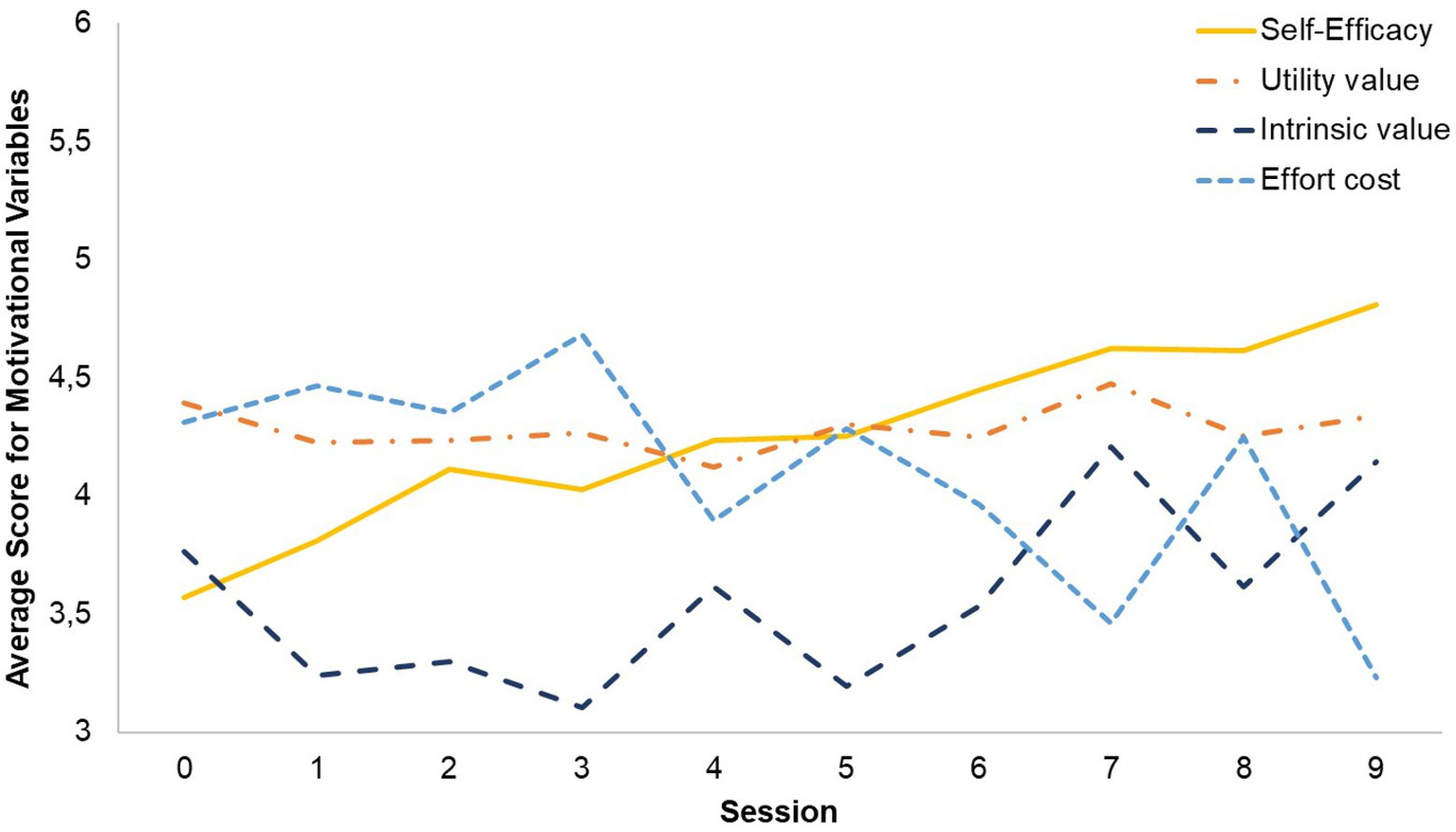| Session | Subjective ratings for each of the 10 learning journal entries | 0, 1, … 9 |