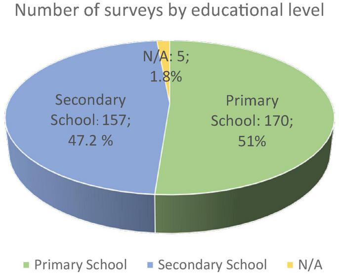 In order to constitute the sample, a non-probabilistic, accidental or casual national sampling process was used. Specifically, and in order to give it the maximum level of representativeness, 332 teachers who teach in the different autonomous communities of Spain (n = 332), including Andalusia, Asturias, the Canary Islands, Castile and Leon, Extremadura, Galicia, Madrid, the Basque Country, the Region of Murcia, and Valencia, took part in the study. It is worth noting the balanced and balanced nature of the sample, as the number of women and men surveyed was similar (52% women and 48% men - cf. Figure 1). Similarly, a distinction was also made between the level of education at which they taught, with primary education being the most common stage of education (51% of respondents, and 47.2% at secondary education), minus the 1.8% who did not specify the level at which they taught (cf. Figure 2). Similarly, a distinction was also made between those teachers who - on at least one occasion during their entire career - participated in educational innovation projects (67%) and those who had never done so (33%).