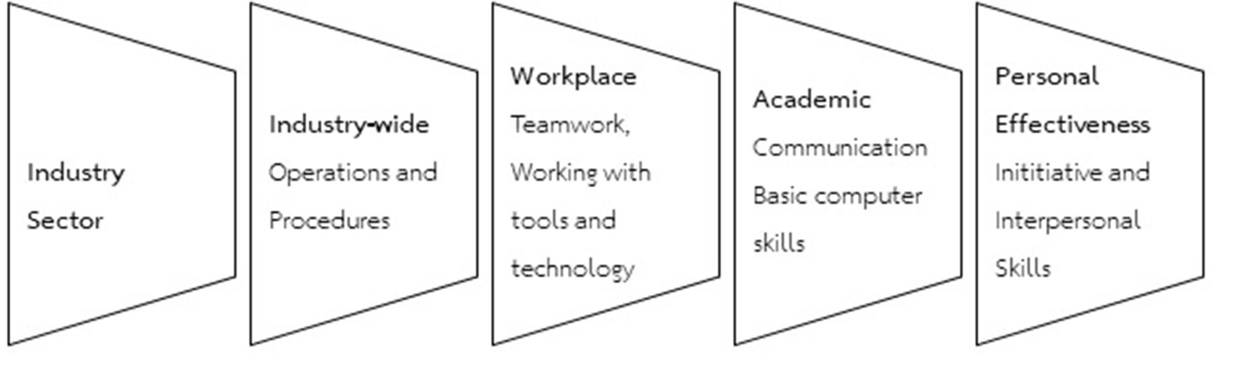 This research adopted the ESS (Quality Indicators for Learning Teaching., 2021) to measure satisfaction in five different attributes: (1) foundational skills, such as general literacy, numeracy, and communication skills, (2) adaptive skills, such as the ability to adapt and apply skills and knowledge, (3) collaborative skills such as teamwork and interpersonal skills, (4) technical skills such as the application of professional and technical knowledge, and (5) employability skills such as the ability to perform and innovate in the workplace.