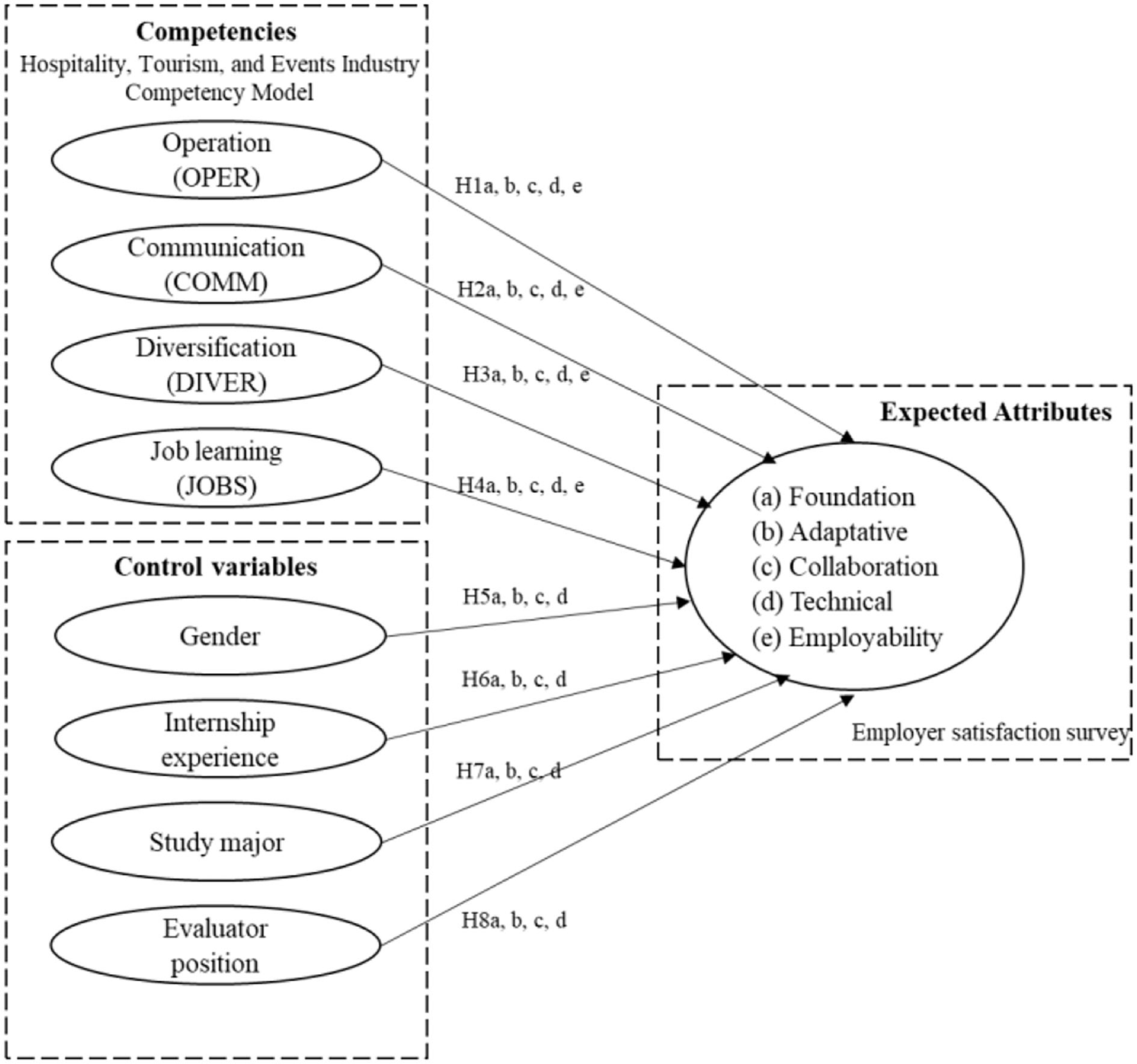 Regarding the satisfaction theory (Oliver, 1980), satisfaction can be reached by comparing perceived and actual performance. When the actual performance exceeds the perception, satisfaction is achieved. To gauge employer satisfaction with internships, if the students perform their competencies beyond the expectations of employers, satisfaction could exist. However, as there are many required competencies in the hospitality and tourism industries and many attributes that cause employer satisfaction, this study argues that identifying the students' competencies will influence the satisfaction of employers post-COVID-19. At the same time, the demographic factors of students, such as gender, internship experience, evaluator position, and study major, are examined in the context of employer satisfaction. Therefore, based on the research objectives, the following hypotheses have been outlined: